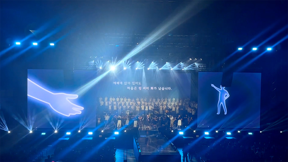 16M x 7M μ λν μ€ν¬λ¦°μ λ§μΆ° 3Dλ‘ μ μλμλ νλ μμ. 물리μ μΌλ‘ λΆλ¦¬λλ LED μ€ν¬λ¦°μ λ§μΆ° ꡬν λ λ°λ€μ κ°λΌμ§ νν.